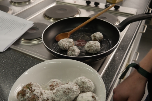 Aus Steinfurt ging es mit dem Bus nach Horstmar, wo sich die Schülerinnen und Schüler in kleinen Teams einem spanisch kulinarischen Kochbattle stellten – von Albondigas und Patatas Bravas über veganen Salat und Paella bis hin zu süßer Crema Catalana als Nachtisch.