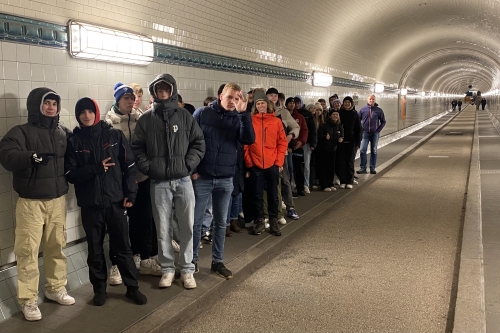 In drei Tagen in Hamburg erkundeten der Erdkunde-Leistungskurs bei Frau Schmelz und der Erdkunde-Grundkurs von Frau Niehoff zusammen mit Kurslehrerinnen, Herrn Büsing und Frau Strothmann als Praxissemesterstudierende die Handels- und Hafenstadt an der Norderelbe mit straffem Programm und strammen Schritt; trotz charakteristischen Hamburgwetters. Spannend waren dabei nicht nur die verschiedenen Perspektiven auf die Stadt, etwa vom „Michel“ ganz hoch oben, aus verschiedenen Stadtvierteln oder von der windigen Fähre aus, sondern auch das Sichtbarwerden der „Theorie“ aus dem Erdkunde-Unterricht in der Realität. Im Fokus standen dabei unter anderem Aspekte der Stadtstrukturen und Stadtentwicklung; gespannt lernten die Schülerinnen und Schüler nicht nur über die geschichtliche Entwicklung Hamburgs, sondern auch über geplante Projekte für ein zukünftiges, auch grüneres Hamburg… Und danach: durfte sich natürlich immer ausgeruht werden, ob auf dem Hamburger Weihnachtsmarkt bei einem (selbstverständlich alkoholfreien) Glühwein auf der Reeperbahn, der „Kirmes am Dom“ oder beim gemütlichen Zusammensitzen und Spielen in der Jugendherberge. Von der Fahrt nehmen alle, neben einem offeneren, erdkundlich geschulten Blick und einer Vorliebe für zu überwindende Beton-Zäune, liebevolle Eindrücke der Stadt Hamburg mit. Hinzu kommen drei Tage schönen Zusammenseins und - tatsächlich - eine ordentliche Prise neuer Motivation für den Erdkundeunterricht…